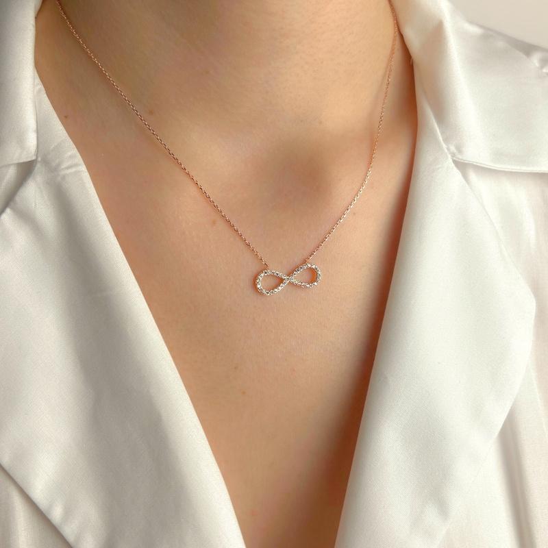 Sonsuz sevgi ve bağlılığı temsil eden bu kolye, sevgililer günü, yıl dönümü ve doğum günü gibi özel günlerde duygusal ve anlamlı bir armağan olarak öne çıkar.